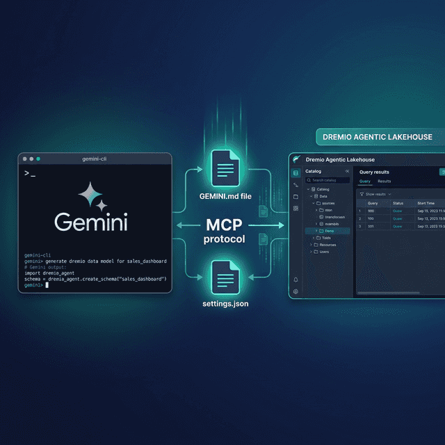 Gemini CLI is Google’s open-source terminal-based AI agent. It runs directly in your terminal, powered by Gemini models with a 1-million token context window. Dremio is a unified lakehouse platform that provides business context through its semantic layer, universal data access through query federation, and interactive speed through Reflections and Apache Arrow.